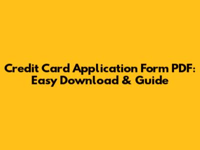 Credit Card Application Form PDF: Easy Download & Guide