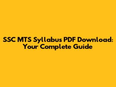 SSC MTS Syllabus PDF Download: Your Complete Guide