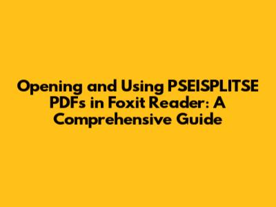 Navigating and Using PSEISPLITSE PDFs in Foxit Reader