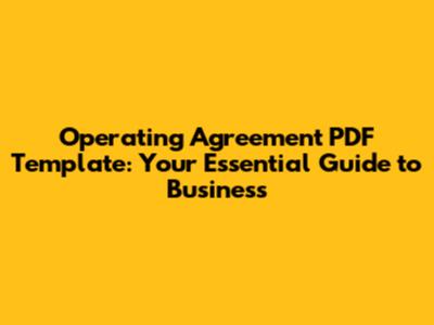 Hey guys! So, you're looking for an operating agreement PDF template? Awesome! Whether you're starting an LLC or forming a partnership, getting this document right is super important. Think of it as the rulebook for your business – it outlines how things will run, who's in charge, and what happens if things go south. This guide will walk you through everything you need to know about operating agreements, why you need a good operating agreement PDF template, where to find one, and how to use it. Let's dive in and make sure you're set up for success, alright?