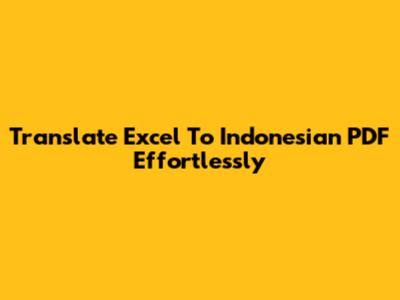 Translate Excel To Indonesian PDF Effortlessly