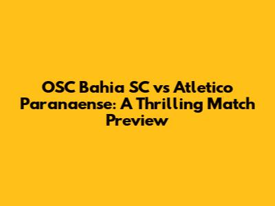 Get ready, football fans! The clash between OSC Bahia SC and Atletico Paranaense is just around the corner. This match promises to be an exciting encounter, filled with strategic plays, intense moments, and unforgettable action. Whether you're a die-hard supporter of either team or simply a lover of the beautiful game, this preview will give you all the essential details to gear up for the match.