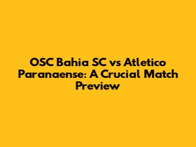 Hey guys! Get ready for an in-depth look at the upcoming clash between OSC Bahia SC and Atletico Paranaense. This match is super important for both teams, and we're here to break down everything you need to know. From current form to key players, we’ve got you covered. So, grab your snacks, settle in, and let’s dive into what makes this game a must-watch!