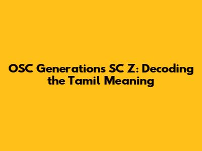Hey guys! Let's dive into something interesting today: understanding the Tamil meaning of "OSC Generations SC Z." Now, this phrase might seem like a mouthful at first, but don't worry, we'll break it down piece by piece. We'll explore what each part of this acronym means, especially in the context of Tamil language and culture. This is going to be a fun exploration, and I'll try to keep it as simple as possible. We'll be looking at what OSC, Generations, SC, and Z stand for, and how they relate to each other. Get ready to learn something new and gain a better understanding of this phrase. This detailed explanation will help you decode the meaning. So, without further ado, let's jump right in! It's super important to understand the components of any technical term to grasp its true meaning, especially when translating it to another language, in this case, Tamil. So, stick around, and let's decode this together, step by step. I am sure you'll find it incredibly helpful, whether you're a student, a professional, or simply someone who's curious about language and technology. The goal here is not just to translate words, but to convey the true essence of the meaning in a way that resonates with Tamil speakers. The meaning of this phrase will be super clear by the end of this guide. So, let’s begin!