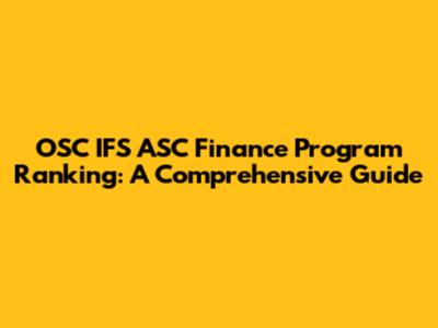 Why is the OSC IFS ASC Finance Program Ranking Important?