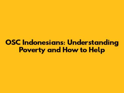 Hey guys! Ever wondered about the challenges faced by our fellow OSC Indonesian citizens living in poverty? It’s a pretty big deal, and today, we’re diving deep into understanding what poverty looks like for them, why it happens, and most importantly, what we can do to make a difference. Let’s get started!