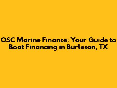 Hey there, boat enthusiasts! If you're cruising around Burleson, TX, and dreaming of owning a boat, you've probably already started looking into how to make that dream a reality. Well, let me tell you, one of the biggest steps in getting your sea legs is figuring out the financial side of things. Today, we're diving deep into OSC Marine Finance in Burleson, TX, and how they can help you navigate the often choppy waters of boat financing. We'll cover everything from the basics to some insider tips that can make your financing experience smoother than a freshly waxed hull. Buckle up, because we're about to set sail on a journey to boat ownership!