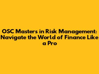 Hey guys! Ever wondered how the financial world's big players keep their cool when things get stormy? Well, a huge part of it is risk management. And if you're looking to dive deep into this fascinating field, an OSC Masters in Risk Management could be your golden ticket. Let's break down what makes this program so valuable and how it can set you up for an awesome career.