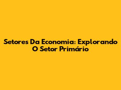 Setores Da Economia: Explorando O Setor Primário