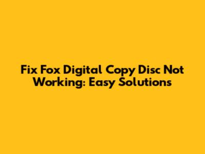 Fix Fox Digital Copy Disc Not Working: Easy Solutions