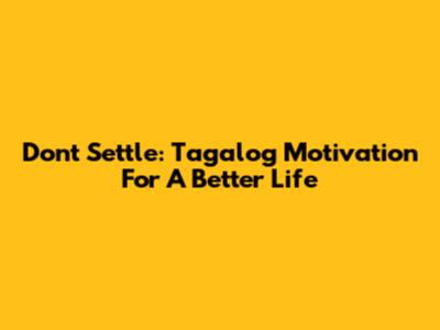 Don't Settle: Tagalog Motivation For A Better Life