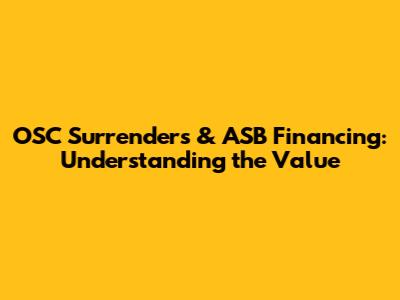 Let's dive into the world of OSC surrenders, ASB financing, and how they all tie together when we're talking about value. Guys, this might sound a bit technical at first, but trust me, we'll break it down so it's super easy to understand. We're going to explore what OSC surrenders are, how ASB financing works, and most importantly, how to figure out the actual value you're getting from these financial tools. Whether you're a seasoned investor or just starting to dip your toes into the world of finance, understanding these concepts can seriously help you make smarter decisions. So, buckle up, and let's get started!