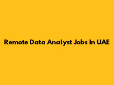 Remote Data Analyst Jobs In UAE