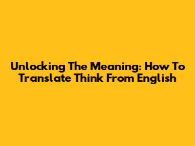 Unlocking The Meaning: How To Translate 'Think' From English