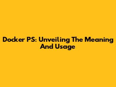 Docker PS: Unveiling The Meaning And Usage