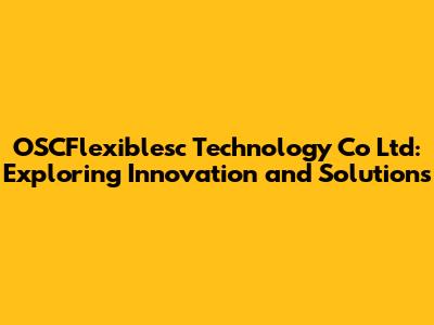 Hey guys! Ever heard of OSCFlexiblesc Technology Co Ltd? If not, buckle up because we're about to dive deep into what makes this company tick, what they're bringing to the table, and why you should probably keep an eye on them. This isn't just another tech company; OSCFlexiblesc seems to be carving out a unique space for itself, and it's worth understanding what they're all about. So, let's get started!