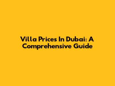 Villa Prices In Dubai: A Comprehensive Guide