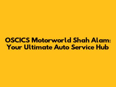 Hey guys! Ever found yourself in a situation where your car just wouldn't cooperate? We've all been there, right? That's where OSCICS Motorworld Shah Alam steps in! This place isn't just another auto repair shop; it's a comprehensive service center dedicated to keeping your ride running smoothly. Whether you're dealing with a minor hiccup or a major overhaul, OSCICS has got your back. Let's dive deep into what makes this place a go-to spot for car owners in Shah Alam.