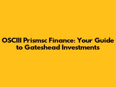 Hey guys! Thinking about diving into the world of finance and investments in Gateshead? Or maybe you're already navigating the financial landscape and looking for some solid insights? Well, you've landed in the right spot! Let's break down everything you need to know about OSCIII Prismsc Finance and how it plays a role in the Gateshead area. Trust me, it's not as complicated as it sounds!