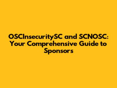 The Role of Sponsors in OSCInsecuritySC and SCNOSC
