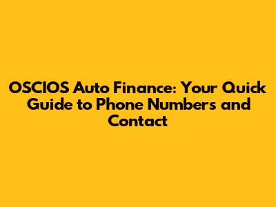 Why Knowing the OSCIOS Auto Finance Phone Number Matters