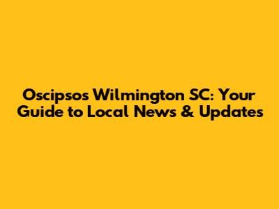 Hey there, news enthusiasts! Let's dive into the vibrant world of Oscipsos Wilmington SC and uncover everything you need to know about local news, events, and happenings. Whether you're a long-time resident or just passing through, staying informed is key. So, grab your favorite beverage, get comfy, and let's explore the latest buzz from the Oscipsos Wilmington SC scene.