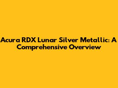 Acura RDX Lunar Silver Metallic: A Comprehensive Overview