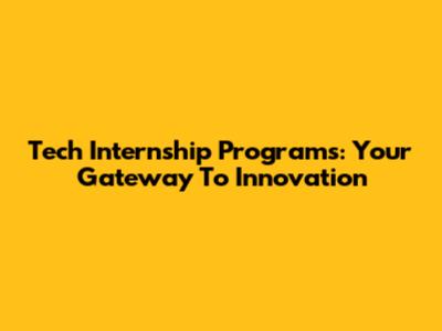 Tech Internship Programs: Your Gateway To Innovation