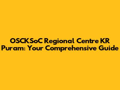 Hey guys! Ever heard of the OSCKSoC Regional Centre KR Puram and wondered what it's all about? Well, you're in the right place! This guide is your one-stop shop for everything you need to know about this important center. Let's dive in!