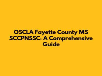 First things first, let's dissect this alphabet soup. OSCLA, Fayette County MS, and SCCPNSSC each represent something significant, and understanding them individually is key to grasping the whole picture. Let's break it down: