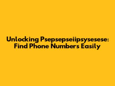 Unlocking Psepsepseiipsysesese: Find Phone Numbers Easily