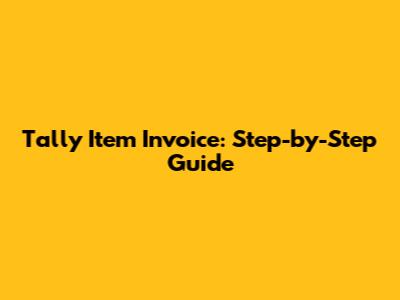 Tally Item Invoice: Step-by-Step Guide