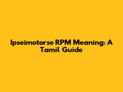 Ipseimotorse RPM Meaning: A Tamil Guide