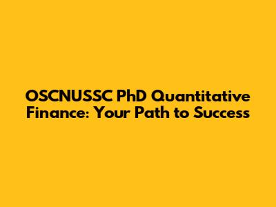 Hey guys! So you're thinking about diving headfirst into the world of quantitative finance, huh? That's awesome! It's a field that's super exciting, intellectually stimulating, and let's be honest, can be incredibly lucrative. If you're aiming for the top, a PhD is often the golden ticket. And if you're looking at top-tier programs, the OSCNUSSC PhD in Quantitative Finance is definitely one you should have on your radar. In this article, we'll break down everything you need to know about the OSCNUSSC PhD in Quantitative Finance program. We'll explore what makes it stand out, the kind of curriculum you can expect, the career paths it opens up, and some tips to help you ace your application. Ready to get started? Let's jump in!