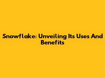 Snowflake: Unveiling Its Uses And Benefits