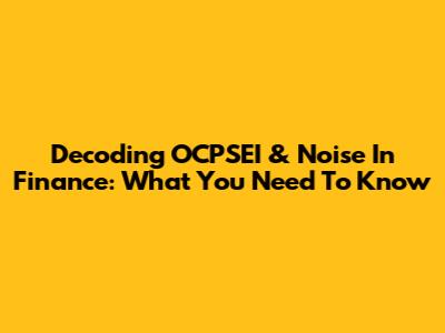 Decoding OCPSEI & Noise In Finance: What You Need To Know