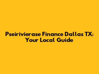 Pseirivierase Finance Dallas TX: Your Local Guide