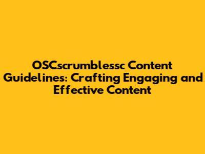 Creating engaging and effective content is crucial for any platform, and OSCscrumblessc is no exception. These content guidelines are designed to help you produce material that resonates with your audience, aligns with the platform's objectives, and contributes to a positive user experience. Whether you're a seasoned content creator or just starting out, understanding and adhering to these guidelines will ensure your contributions are valuable and well-received.