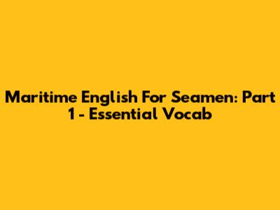 Maritime English For Seamen: Part 1 - Essential Vocab