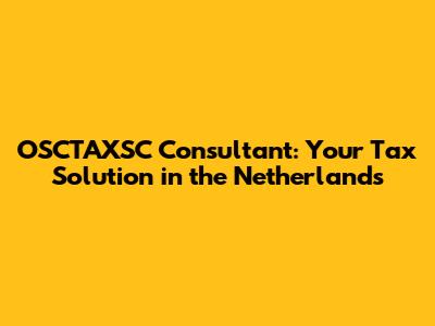 Why You Need an OSCTAXSC Consultant in the Netherlands