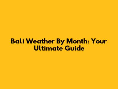 Bali Weather By Month: Your Ultimate Guide
