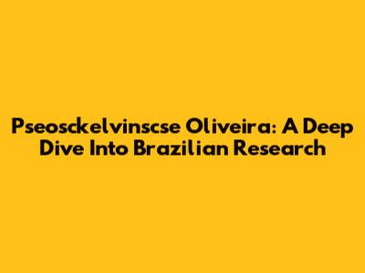 Pseosckelvinscse Oliveira: A Deep Dive Into Brazilian Research