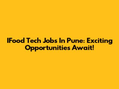 IFood Tech Jobs In Pune: Exciting Opportunities Await!