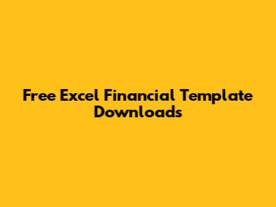 Free Excel Financial Template Downloads
