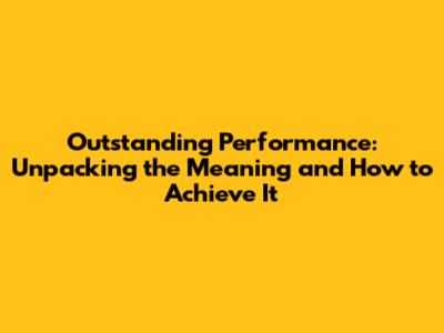 So, when we talk about outstanding performance, we're not just talking about doing a good job. We're talking about hitting it out of the park! It's about going above and beyond expectations, consistently delivering exceptional results, and making a significant positive impact. It's the kind of performance that sets you apart from the crowd, the kind that gets you noticed, and the kind that drives real success. Think of it as the gold standard of achievement. It's the pinnacle of what's possible in a given role or task. It's not just about ticking the boxes; it's about exceeding them, leaving your mark, and inspiring others. It's about being a top performer who consistently delivers results. It's the difference between merely existing in a role and truly excelling in it. Furthermore, it's about embracing challenges, taking initiative, and constantly seeking ways to improve and innovate.