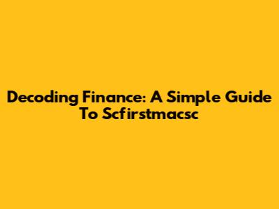 Decoding Finance: A Simple Guide To Scfirstmacsc