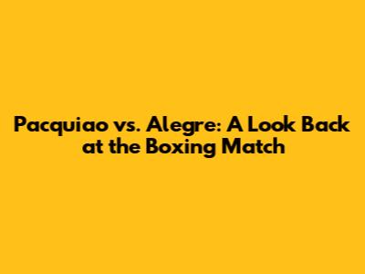 Let's dive into a nostalgic look back at the Pacquiao vs. Alegre fight. This is more than just a recap; it's a comprehensive journey exploring the context, the hype, the fight itself, and the aftermath. For boxing fans and those curious about the legendary Manny Pacquiao's career, understanding this fight offers a crucial snapshot of his evolution as a fighter. We aim to provide an engaging and insightful narrative, making you feel like you're reliving the experience.