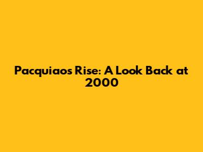 Hey guys! Let's rewind the clock and dive into the early days of a boxing legend: Manny Pacquiao. We're going to zoom in on the year 2000, a crucial period in his career that set the stage for the global phenomenon we know today. This was the year when Pacman was really starting to make waves, showcasing the speed, power, and heart that would later captivate millions. This era is super interesting because it shows the grit and determination required to climb the ranks in professional boxing. We'll be looking at his fights, the challenges he faced, and what made the year 2000 such a pivotal point in his journey. Ready to lace up our gloves and get started? Let's go!