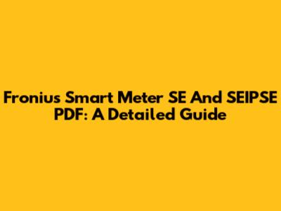 Fronius Smart Meter SE And SEIPSE PDF: A Detailed Guide