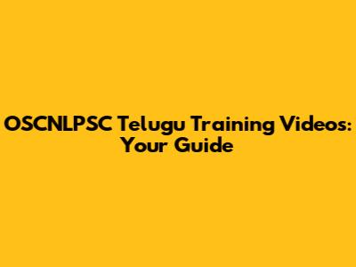 OSCNLPSC Telugu Training Videos: Your Guide